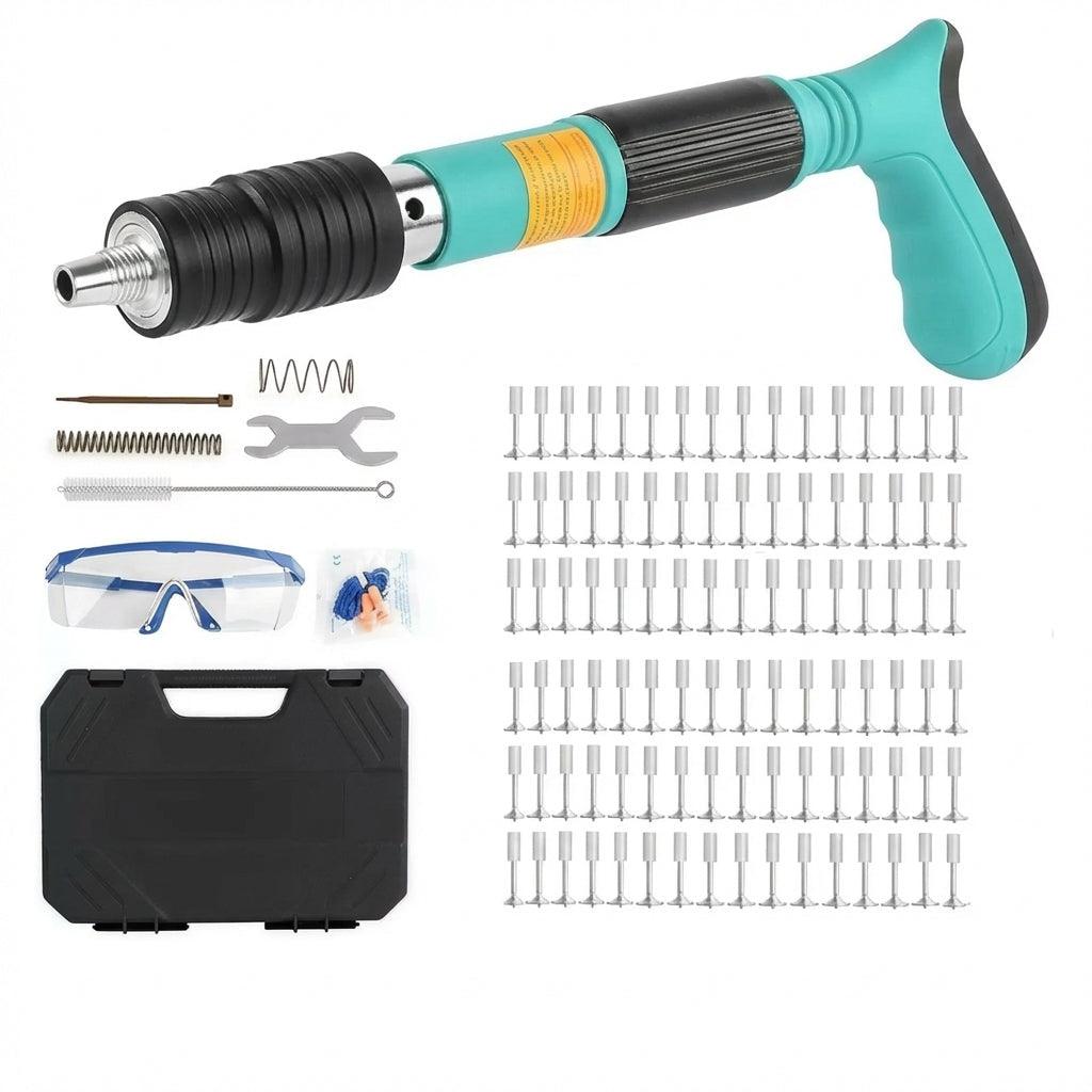 Pistol de Bătut Cuie în Beton + 50 Cuie - Putere Ajustabilă 3 Trepte & Amortizor Zgomot (Fără Aer/Curent)